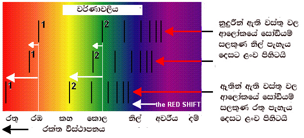 දේදුනු වර්ණ වලින් යුතු වර්ණාවලියේ එක් කෙළවරක ඇති රතුපැහැය ජනිතවන්නේ අනික් කෙළවරේ ඇති නිල් පැහැයට වඩා ඈතින්. මේ සංකල්පය මත ග්රහවස්තුවකින් එන ආලෝකයේ ඇති සෝඩියම් වැනි රසායනික සළකුණින් පෙනෙන රක්ත විස්ථාපන ප්රමාණය අනුව එම ග්රහ වස්තුව පිහිටි දුර සොයාගත හැකි බව පළමුවෙන් ම සොයාගනු ලැබුවේ ශ්රේෂ්ට තාරාකාවිද්යාඥයෙකු වූ එඞ්වින් හබල් විසින් වීමයි. චිරප්රසිද්ධ හබල් දුරේක්ෂයට ඒ නම ලැබුනේත් මිය ගිය ඒ එඞ්වින් හබල්ට උපහාර පිණිසයි. මේ ‘රෙඞ් ෂිෆ්ට්’ හෙවත් ‘රක්ත විස්ථාපනය ‘හබල් විස්ථාපනය’ යන නමින් ද හඳුන්වනු ලබනවා.