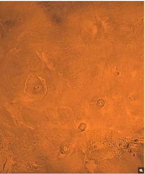 එක පේළියට ඇති තාර්සිස් මොන්ටේස් සමුහයේ විශාලතම යමහල් තුන (ඉහළ වමෙහි ඇත්තේ සකළ සෞරග්රහ මණ්ඩලයෙහිම විශාලතම යමහල ලෙස හඳුනාගෙන ඇති ඔලිම්පස් මොන්ස් යමහලයි.) (නාසා සේයා රූ)