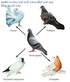 ගෘහාශ්රිතකරණය කරන ලද සියලූම ශාක සහ සත්වයන් වල් නැතිනම් කැලෑගත ආදිතම විශේෂවලින් වරණිය අභිජණනයෙහි ඵලයන්ය. නිදසුනක් දෙකක් දක්වන්නේ නම් අද අප දකින බේස්බෝල තරම් වන තක්කාලි පේරු රටේ පූර්වජ තක්කාලි විශේෂයට වඩා බෙහෙවින් වෙනස්ය. ඒ ආදිතම තක්කාලි දංගෙඩියකට වඩා විශාල නොවීය. එමෙන්ම කෙටි පා සහ දිග සිරුරක් සහිත ඩෑෂවුන්ඞ් සුනඛයන්, ඔවුන්ගේ අභිජනනයට මුල පිරූ වෘකයන්ට වඩා බෙහෙවින් වෙනස් පෙනුමකින් යුක්තය. ජනිතයන් තුළ බලාපොරොත්තු වන ගතිලක්ෂණ ඇති කිරිම පිණිස ගෘහාශි්රතකරණය කරන ලද ශාක හා සත්වයන් වර්ණීයව අභිජනනයකිරීම— කෘතිම වරණය පිළිබඳ අදහස ජනිතවීම, පරිණාමීය විපර්යාසයන් අවබෝධ කර ගැනීමට ප්රධාන වශයෙන් මඟ පාදයි. තමන් විසින්ම ඍජුව අත්දැකීම ලබා ගැනීමේ අදහසින් විචිත්ර පරෙවියන් බෝ(අභිජනනය) කළේය. (චිත්රය බලන්න) තවද, ගොවිපළ සතුන් අභිජනනය ගැන හෙතෙම ගොවීන් සමග කතා බහේ යෙදුනේය. මේ වයේ ප්රතිඵලයක් ලෙස, කෘතිම වරණයෙහි, ප්රභේදනය සහ උරුමකරගත හැකිබව යනුවෙන් අත්යවශ්ය අංග දෙකක් ඇති බව අවබෝධ කර ගැනීමට ඔහුට හැකි විය.
