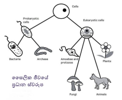 වඩාත්ම සරල සහ පැරණිතම ජීව ස්වරූපය වන්නේ බැක්ටීරියාවන්ය. බැක්ටීරියාවක ශරීරය සෑදී ඇත්තේ (චිත්රය බලන්න) එක් තනි ඉතා කුඩා ප්රාග්න්යෂ්ටික සෛලයකිනි (‘prokaryotic’ cell). ඒවා එකතුවන්නේ බැක්ටීරියාවකට සමාන ක්ෂුද්රජීවියෙක් වන ආකි බැක්ටීරියා වෙනි. මේවා විෂයයට අදාළ දැනුමක් නොමැති අයට බැක්ටිරියාවක් ලෙසම පෙනීයා හැකි නමුත් ඒ දෙවර්ගය අතර වැදගත්කමක් දක්වන වෙනස්කම් ඇත. ඇමීබාවාව(amoebae සහ ප්රොටෝසෝවාව (protozoa) ඇතුළු අනෙකුත් ඒකසෛල ජීවීන් සතුව බෙහෙවින් විශාල එමෙන්ම වඩාත් සංකීර්ණ සෛල ඇති අතර, ශාක, සත්වයින් සහ දිලීර මගින් යොදාගනු ලබන්නේ මෙම (චිත්රය බලන්න) සුන්යෂ්ටික සෛල(‘eukaryotic’) වර්ගයි. සෑම ජීව විශේෂයක් සතුවම අනන්ය වූ ජීවන රටාවක් පවතින නමුත් එක ජීවවිද්යාත්මක කාණ්ඩයක සාමාජිකයන් අතරේ වෙනත් කණ්ඩායමවල සමාජිකයන් අතරේට වඩා සමාන ගති ලක්ෂණ වැඩියෙන් දැකිය හැකිය. ඒ කෙසේවතුදු, සෑම ජිව ස්වරූපයක්ම පොදුවේ සතුවන ශක්යතාවන් හෙවත් හැකියාවන් පෙළක්ම ඇත:ඔවුහු සිය වටපිටාව ගැන සංවේදීය;බහිස්ස්රාවය(මලපහ)කරති; ප්රජනනය කරති; වර්ධනයවෙති; ශ්වසනය කරති; එමෙන්ම පෝෂණය අවශ්යවේ.