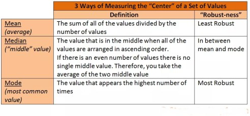 දත්ත බෙදීයාමක සම්පිණ්ඩනය සඳහා වූ වඩාත් හුරු පුරුදු සංඛ්යාතිය(statistic) වන්නේ මධ්යනය (the mean) හෝ පොදු සාමාන්යයයි(common average). එහෙත් එය අර්ථ නිරූපණයේ දී සැලකිලිමත් විය යුතුය. (සෑම පවුලක සිටින ළමුන් සංඛ්යාව වැනි) දත්ත විභින්න නැතිනම් වියුක්ත වූ විට මධ්යන්ය, තිබිය නොහැකි අගයක් ගැනීමට පවා පුළුවන( උදාහරණ ළමුන් 2.2). දත්ත එක අන්තයක් වෙත බෙහෙවින් කුටික() හෙවත් ඇද වූ විට මධ්යන්ය සාමාන්යයෙන් පවතින (ප්රරූපීය = typical) අගයකට ආසන්න නොවීමට පවා පුළුවන. මෙහිදී නිදසුනක් මඟින් පැහැදිලි කරගත ගතහොත්, බෙහෙවින් විශාල ආදායමක් ඇති පුද්ගලයන් සුළු පිරිසකට, මධ්යයනය අඩුකිරීමට තිබෙන අග අන්තයේ රැඳී විශාල පිරිසකට තිබෙන හැකියාවට වඩා සැලකිය යුතු ප්රමාණයකින් ඉහළ දැමිය හැකිය. දත්ත ඒවායේ ඉහළ කොටසින් පහළ කොටස වෙත කරන්නාවූ මධ්යනය බොහෝ කාර්යයන් සඳහා වඩාත් අර්ථාන්විතය. යම් ප්රමාණයක විහින්න හෙවත් වියුක්ත අගයන් පමණක් ඇති විටක වඩාත් තොරතුරු අන්තර්ගත ආකාරයේ සාමාන්යය යනු මාතය ( mode ප්රකාරය) විය හැකිය. මෙය වඩාත් පොදු තනි අගයයි. උදාහරණ: ඇ.එ.ජ. සෑම පවුලකට වඩාත් පොදු මෝටර් සංඛ්යාව 1 කි.