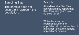 යමක සමස්තය පිළිබඳව එහි නියැදි මගින් යම් නිගමන වලට එළඹීමේදී ප්රධාන කාරණා දෙකක් සැලකිල්ලට ගත යුතුය. අප මුලින්ම අවධානය යොමු කළ යුත්තේ නියැදිය තෝරා ගැනීම කළ අන්දම නිසා නිර්මාණය වීමට ඉඩ තිබෙන අගති හෙවත් පක්ෂග්රාහීතාව (bias)ගැනයි. නියැදි නියම කර ගැනීමේදී අගතියට මුල්වන හේතු කාරණා අතර පහසුව තැකීම(උදාහරණ – තමන් මිත්රයන් පමණක් සම්මුඛ සාකච්ඡාවන්ට සහභාගී කරවා ගැනීම, මතුපිට තිබෙන පාෂාණ පමණක් තෝරා ගැනීම වැනි පහසු දේ තෝරාගැනීම) ස්වයං වරණය (self-selection) (උදාහරණය – ස්වේච්ඡාවෙන් ඉදිරිපත් වන අය හෝ ප්රශ්ණාවලිය ආපසු භාර දෙන අය පමණක් අධ්යයනය කිරීම) අතරතුරදී මග හැර යන්නන් ඇතුල් කිරීමට අසමත් වීම(උදාහරණ – පාසලේ රැඳී සිටින සිසුන් පමණක් හෝ යම්කිසි චිකිත්සා පිළියම් මාලාවකට දිගටම සහභාගිවන්නන්ගේ පමණක් පරීක්ෂාවට ලක් කිරීම) සහ අපගේ පූර්ව නිගමනයන්ට සහාය පළ කරන දත්ත පමණක් යොදා ගැනීමට තීරණය කිරීම ද ඇතුළත් වේ.