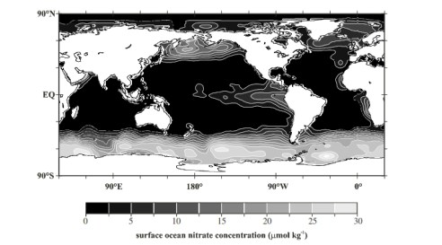 සාගරයේ සංසරණයේ හේතුවෙන් ඔවුන් වෙත සැපයෙන නයිට්රේට් ශාක ප්ලවාංග විසින් සැමවිටකම සම්පූර්ණයෙන් උපයෝගී කර නොගන්නේ මන්ද සහ එලෙස එයට තිබිය හැකි උපරිම වේගයෙන් ජෛව විද්යාත්මක පොම්පය සැමවිටම ක්රියා නොකරන්නේ මන්ද යන්න සාගර විද්යාවේ දිගු කාලයක් පටන් පවතින ප්රහේලිකාවකි. ලෝකයේ සාගරවල ඇතැම් ප්රදේශයන් හී විශේෂයෙන්ම දක්ෂිණ සාගරයෙහි, මතුපිට ජලයෙහි නයිට්රේට් ඉහළ සාන්ද්රණයක් රැඳී පවතී. (චිත්රය බලන්න)
