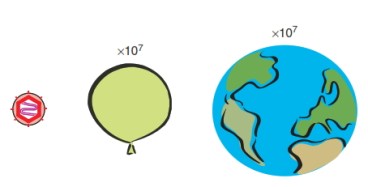 (විරියොන් යනු ප්රෝටීන ආවරණයකින් වටවූ, RNA හෝ DNA පටයකින් යුක්ත, වෛරසයක අක්රීය බහිශ්සෛලීය ස්වරූපයක්). තරමක විශාල වෛරසයක් වන හර්පිස් (විසප්පු) වෛරස විරියොන, විශාල බැලුමක ප්රමාණයට වඩා වඩා මිලියන දහයකින් පමණ කුඩා ය. මේ අතර පෘථිවියට වඩා එවැනි විශාල බැලුනයක් ඒසා ප්රමාණයකින්(මිලියන දහයකින් පමණ ) කුඩාය. බොහෝ වෛරසවල විරියොන ආලෝක අන්වීක්ෂයකින්(light microscope) බැලීමට නොහැකි තරමට කුඩා වන අතර දැකිය හැක්කේ විද්යුත් අන්වීක්ෂයකින්(electron microscope) පමණකි. විරියොන, සාමාන්යයෙන් මනිනු ලබන ඒකකය වන්නේ නැනෝ මීටරය යි(1nm=10-9 m). විරියොන ඉතා කුඩා වුණත් ඒවායේ මාන විශාල පරාසයකට අයත් වෙනවා. 20nm ක විශ්කම්භයකින් යුක්ත (සුනඛයන් හා ගවයන් ලෙඩ කරන) පාවෝ වෛරස(parvoviruses) කුඩාම විරියොන අතර වේ. (ක්ෂුද්රජීවීන් අනුකරණය කරන) ඇමීබාවකින් වෙන්කරගත් මිමි වෛරසය විශාලතම විරියොන අතර වේ.
