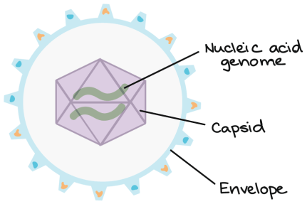 - (වෛරස සියල්ලම නොවුණ්ත් සමහර ඒවා) envelope (ආවරණ) යනුවෙන් හදුන්වනු ලබන පටල ස්තරයක්.