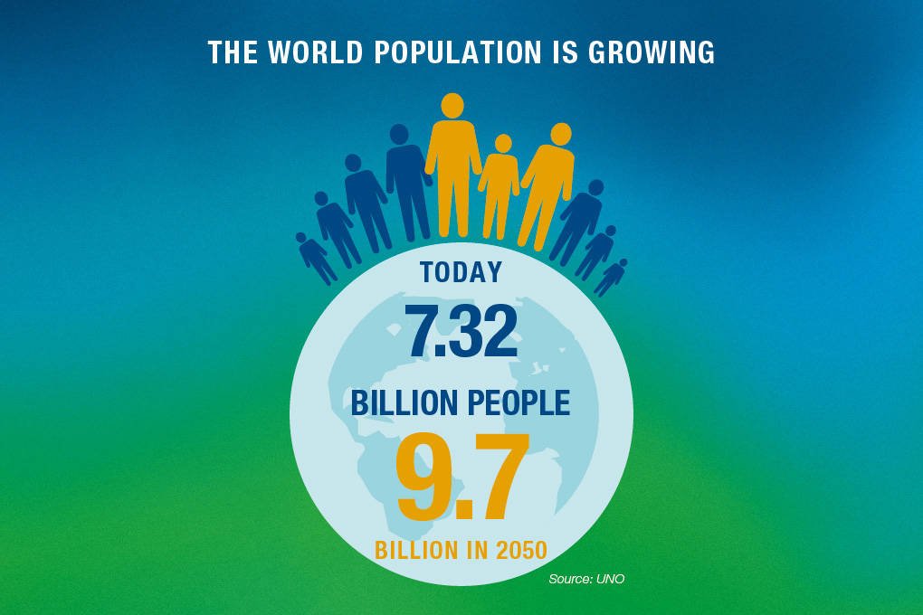 මෙය, 2050 වන විට ලෝක ජනගහන මට්ටම ලෙස ප්රක්ෂේපිත ප්රමාණයට වඩා මදක් වැඩිය