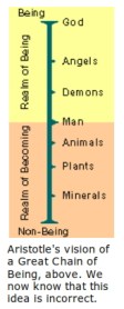 පහල සිට ඉහළ මට්ටම් වශයෙන් ඉනිමඟක් මත ජීවය සංවිධානගත කළ හැකිය යන දෝෂ සහිත මතයට පසුගිය කාලයේ කීප වතාවක්ම ජීව විද්යාඥයෝ දායක වී ඇත. ඇරිස්ටෝටල් දැක්වූ ‘ජීවන මහා දම්වැල’ (චිත්රය බලන්න.) යන්නෙහි කේන්ද්රීය අදහස වශයෙන් පවතින්නේ මෙම ස්වරූපයයි.