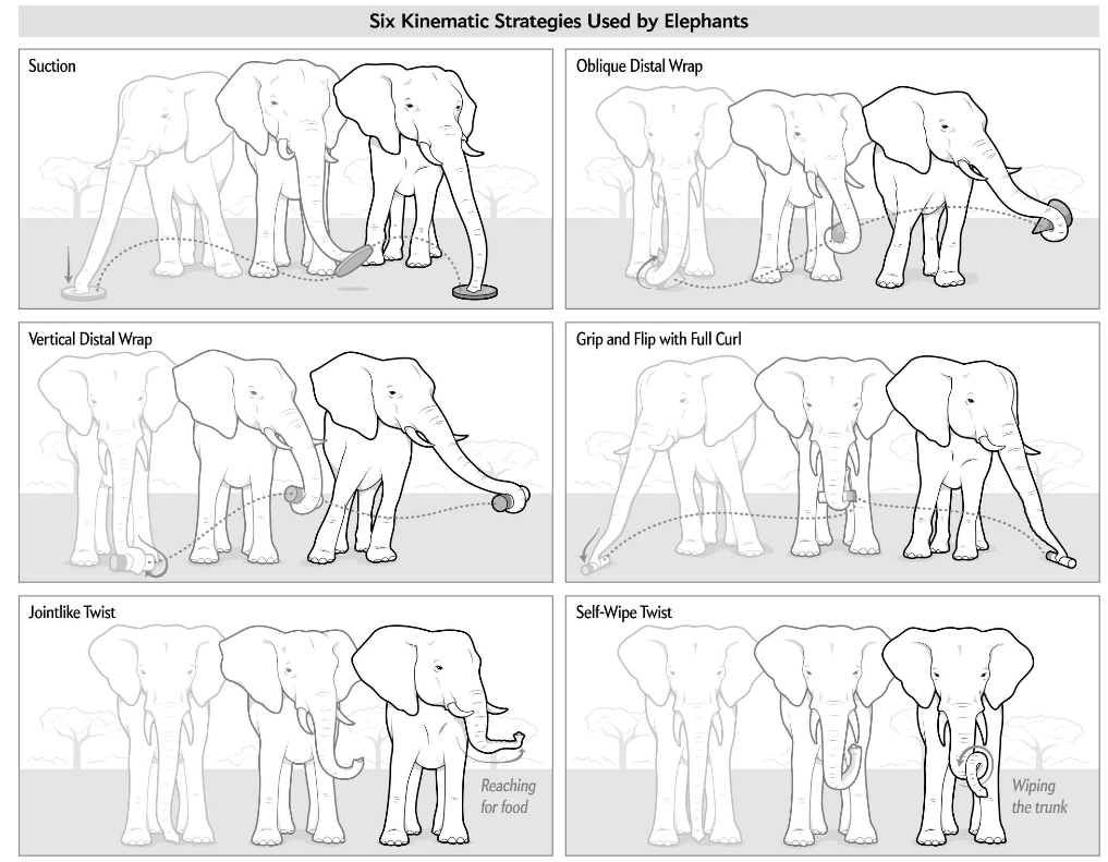 ඇතුන්, සිය සරල ක්රියා සංකීර්ණ් චලිතයන් බවට පත් කරණ ආකාරය රොබෝට විද්යාඥයන් විසින් අධ්යනය කරනු ලබන්නේ අනාගතයේ රොබෝට විද්යාවේ වර්ධනයට රුකුලක් වනු පිණිසය