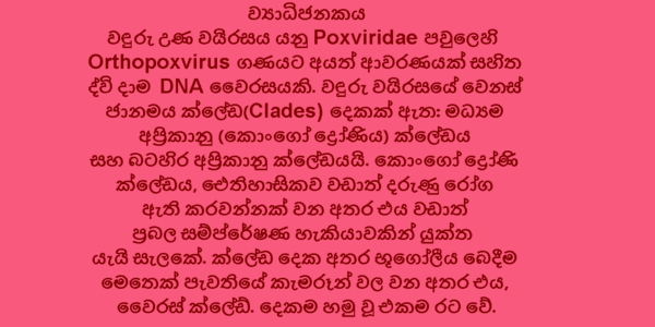 මේ දිනවල කාගේත් පාහේ අවධානය යොමුව ඇති වඳුරු උණ රෝගය(Monkeyfox) ගැන අද අපි කතා කරමු. මේක අලුත් ලෙඩක්ද? ප්රතිකාර වශයෙන් කල හැක්කේ කුමක්ද? එන්නත් සාර්ථක ද? අවදානමට ලක්ව ඇත්තේ කවුද? ඒ වාගේම අප ඒ ගැන සැලකිලිමත් විය යුත්තේ ඇයි?