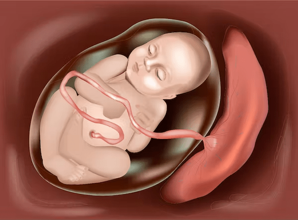 බිත්තරය සහ ශුක්රාණුව එක් වී කළලයක් සෑදීමෙන් පසු කළලය මවගේ ගර්භාෂයට සම්බන්ධ වේ. වැඩෙන දරුවාට අවශ්ය සියලුම පෝෂණය සැපයීම සඳහා වැදෑමහ(placenta ) නමින් හැඳින්වෙන අවයවයක් සාදයි. දරුවා, මවගේ ගර්භාෂයේ සිටියදී පෝෂණය කරන එම වැදෑමහ, මෙහි දකුණු පසින් පෙන්වා ඇත. දරුවා ඉපදීමට සූදානම් වන විට, මවගේ ගර්භාෂයේ මාංශ පේශි හැකිලීමට පටන් ගෙන යෝනි මාර්ගය හරහා දරුවා පිටතට තල්ලු කරයි.