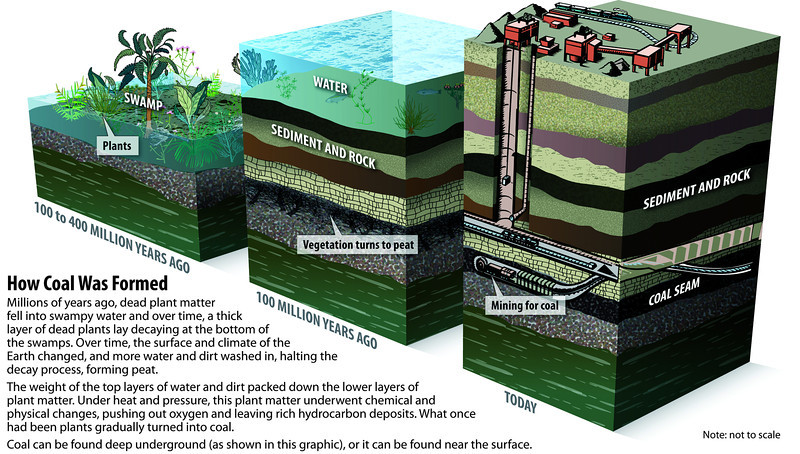 ගල් අඟුරු සෑදීමට වසර මිලියන සිය ගණනක් නොවේ නම් දස දහස් ගණනක් ගත වේ; සියල්ල ආරම්භ වන්නේ (අවසානයේ පොසිල බවට පත් වන) ඒ සා අතීත කාලයේ මේ මිහිපිට පැවති ශාක වලින්.