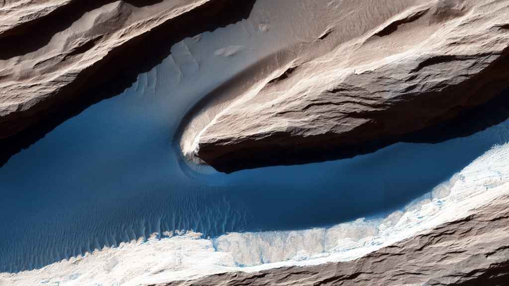 සුළං ක්රියාකාරිත්වය: අඟහරු පෘෂ්ඨයේ මෙම රූපය අඟහරු සමීක්ෂණ කක්ෂීය යානයේ Hඉර්ISE මගින් මත ගෙන ඇති අතර එහි යාදැම්(yardangs) දැකිය හැකිය. මේවා සුළඟින් කැටයම් කරන ලද පාෂාණ ව්යුහයන් වේ. මෙමගින් යාදැම් අතර ප්රදේශ වල වැලි නිර්මාණය වී ඇති අතර එය සුළඟින් රැළි වැටී ඇත. ඉතා අඳුරු ප්රදේශ යාදැම් මගින් හෙලන සෙවනැලි වේ. (අනුග්රහය: NASA/JPL-Caltech/Univ. of Arizona)