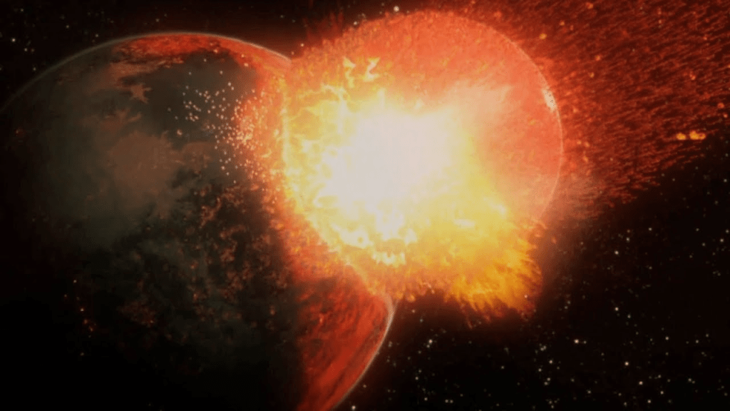 ඇරිසෝනා විශ්ව විද්යාලයට අනුව අපෙ ග්රහලෝකයේ චන්ද්රයා සෑදී ඇත්තේ අලුත බිහි වූ පෘථිවිය සහ අඟහරු ප්රමාණයේ (අභ්යවකාශ) වස්තුවක් එකට ඝට්ටනය වීමෙන් හට ගත් ඇති වූ සුන්බුන් වලින් විය හැකිය. එංගලන්තයේ ග්රීන්විච්හි රාජකීය නිරීක්ෂණාගාරයට අනුව පෘථිවියේ සිට සැතපුම් 238,855 (කිලෝමීටර් 384,400) පමණ වන වර්තමාන සාමාන්ය දුරට චන්ද්රයා ඇද ගැනීමට උදම් බලවේග උපකාර වී ඇත.