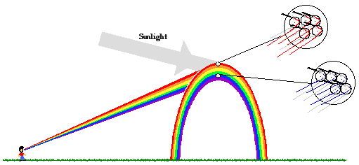 හිරු රශ්මි කදම්භයක්, කෝණයකින් ජල බිඳුවකට වදින විට, එය ජලයට නැමී වර්ණ ආවලියක්(a spectrum of colors) ලෙසට වෙන් වේ. විද්යාඥයෝ ආලෝකයේ නැමීම “වර්තනය”(“refracting” ) ලෙස හඳුන්වති.” ආලෝකයේ එක් එක් “වර්ණ” වෙන් වන්නේ, ජලය තුළ ආලෝකයේ “වර්න” එකිනෙකටවෙනස් වේගයකින් ගමන් කරන නිසාවෙනි. ඇත්තවශයෙන්ම, ජලය තුළ පමනක් නොව, ප්රිස්මයක වීදුරු වැනි ආලෝකය , ගමන් කළ හැකි ඕනෑම විනිවිද පෙනෙන ද්රව්යක් හරහා මෙය සිදුවිය හැක.