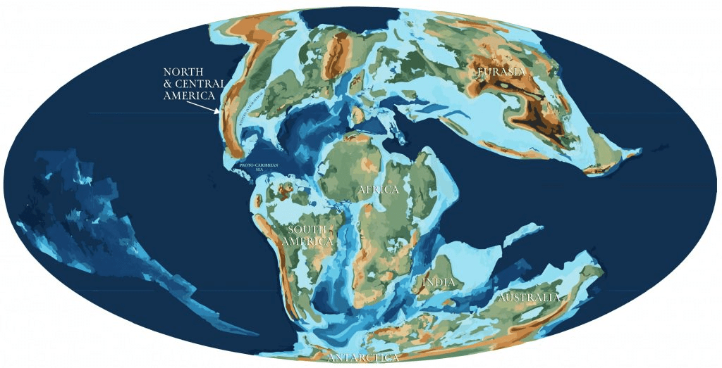 එම අවස්ථාවේදී, (ත්රියාසික භූ යුගයට පෙර තනි මහාද්වීපයක් හැටියට එකට එක්වී තිබුනේ යයි කියනු ලබන භූමි ස්කන්ධය වන) සුපිරි මහාද්වීපය හෙවත් පැන්ජියාව කැඩී යාමේ ක්රියාදාමය ආරම්භව තිබූ අතර, උතුරු ඇමරිකාව නැගෙනහිර සහ බටහිර වෙන් කරන මුහුදු මාර්ගයකින් දෙකට බෙදී ගියේය. සමනලුන් ආරම්භ වූයේ මෙම මහාද්වීපික කුට්ටියේ බටහිර පැත්තේ ය.