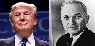 ඩොනල්ඩ් ට්රම්ප්, වමේ සහ හැරී ටෲමන්: ජාතිකවාදය සහ දේශප්රේමය ගැන විවිධ අදහස් දැරූ ඇමරිකාවේ හිටපු ජනාධිපතිවරු දෙදෙනෙක්.images from Wikimedia Commons, CC BY-NC
