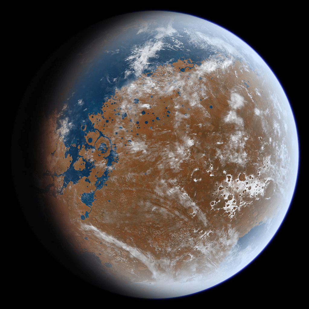 වසර බිලියන ගණනකට පෙර තෙත් සහ උණුසුම් චක්ර සහිත අඟහරු ග්රහයා කෙබඳු වන්නට ඇත්දැයි දැක්වෙන කලාකරුවෙකුගේ ප්රවාචනය Lttiz/Wikimedia Commons