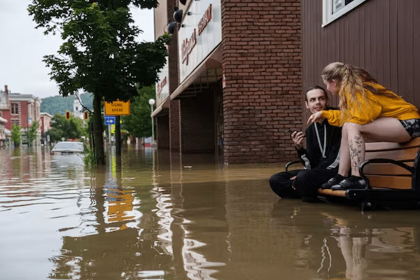 2023 දී ප්රබල කුණාටු පද්ධතියක් හේතුවෙන් වර්මොන්ට් පුරා ප්රජාවන් ගංවතුරට ලක් වූ අතර අගනුවර වන Montpelier විශාල ප්රදේශ ජලයෙන් යට විය John Tully for The Washington Post via Getty Images