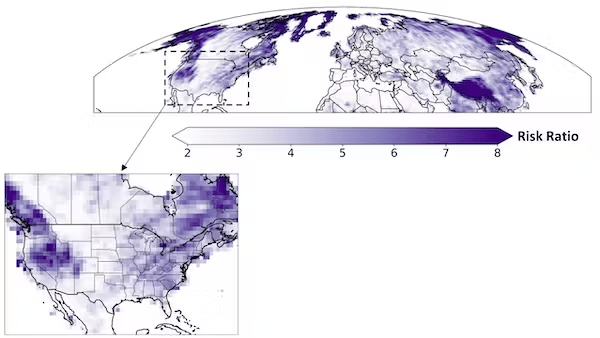 සිය අධ්යයනයේ දී පර්යේෂකයෝ, 1950 ගණන්වල සිට උතුරු අර්ධගෝලයේ ඇති අධිකම වර්ෂාව දෙස බැලූ අතර ඒ අනුව, අධික වර්ෂාපතනයේ තීව්රතාවයේ වැඩිවීම උන්නතාංශය අනුව වෙනස් වන බව සොයා ගත්හ. ඇමරිකාවේ බටහිර කඳුකරය, Appalachian කඳුකරයේ කොටස්, යුරෝපයේ ඇල්ප්ස් සහ ආසියාවේ හිමාලය සහ හින්දු කුෂ් කඳු ද දැඩි බලපෑම් පෙන්නුම් කළේය. එපමණක් ද නොව, දේශගුණික ආකෘතීන් යෝජනා කරන්නේ 21 වන ශතවර්ෂයේ අවසානය වන විට මෙම බොහෝ කලාපවල අධික වර්ෂාපතන සිදුවීම් ඇතිවීමේ හත්-අට ගුණයක වැඩිවීමක් දැකිය හැකි බවයි.