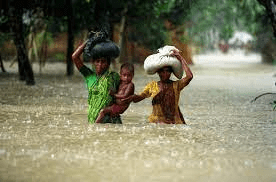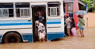 කාන්තාවක් බසයකින් බසින්නේ, අධික මෝසම් වර්ෂාවෙන් ජලයෙන් යට වූ ශ්රී ලංකාවේ දර්ගා නගරයේ වීදියකටය. © Hafiz Issadeen via Flickr (CC BY 2.0)