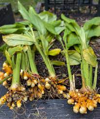 කහ, ඉඟුරු පවුලේ සාමාජිකයෙකු වන අතර ආසියාකරයේ වැසියන් බහුල අකෑමවලට යොදාගන්නා කහ නිපදවා ගන්නේ Curcuma longa හී මුල්වල හටගන්නා අල නැතිනම් රෛමසෝම වලිනි. වගා කන්නය අවසන් වන විට ගොවියෝ කහ ගහේ උසට වැඩෙන් පත්ර වියැලෙන්නට හරිති. අනතුරුව, (බංග්ලදේශයේ නම් බොහෝ විට) සාමනයයෙන් ස්ත්රී පක්ෂය බොහොම සීරුවෙන් මුල් සහ මඩ තලි ඉවත් කර සෝදා, තම්බා පසුව සති කිහිපයක් අව්වේ වියළා ගනිති. ඉන් අනතුරුව, පරෙස්සමින් පොත්ත ඉවත් කරගන්නේ කහපැහැ අලය මතුකර ගනිමිනි. පසුව ඒවා කපා, තලා, කුඩු බවට පත කෙරේ.