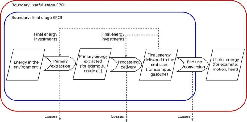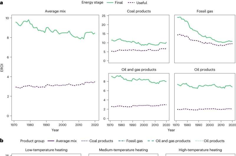 More information: Emmanuel Aramendia et al, Estimation of useful-stage energy returns on investment for fossil fuels and implications for renewable energy systems, Nature Energy (2024). DOI: 10.1038/s41560-024-01518-6